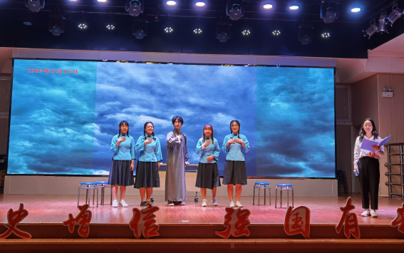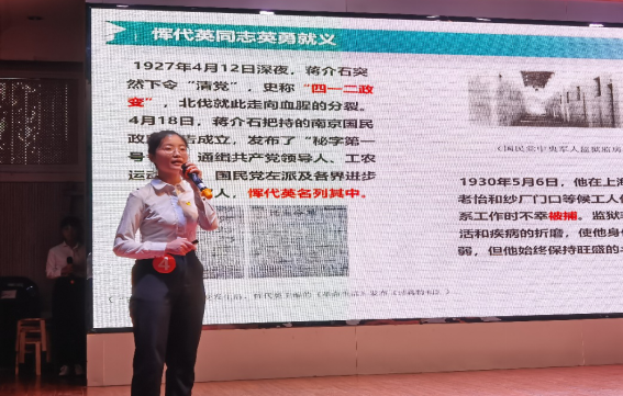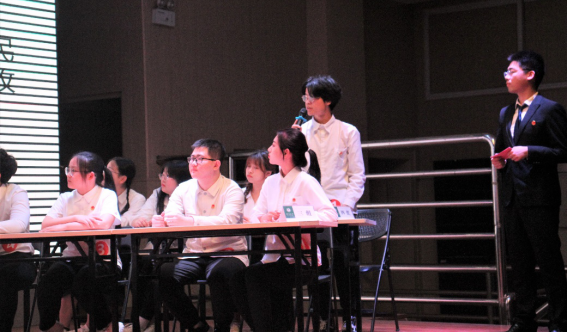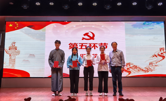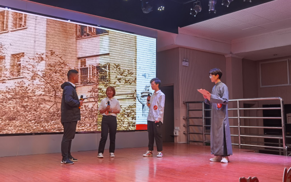 第二轮观众互动问答结束后,四个小组依次上台围绕恽代英同志的生平事迹进行展演。19级小语种代表队以话剧《对话恽代英》,再现了1919年巴黎和会时的恽代英;19级英语代表队汇报的主题为《“英”勇史册,“代”代相传》,以如何创办利群书社为切入口介绍了恽代英;20级小语种代表队着重介绍了恽代英同志的诗歌《狱中吟》,并以合唱《新征程》作结,祝愿祖国繁荣昌盛;20级英语代表队则从恽代英创办利群书社、创办和主编《新青年》、被捕并写下《狱中诗》、英勇就义等角度,重现其当年的英勇。其中,扮演恽代英的20级英语系张雅钧以其精湛的演技和真挚的感情,生动再现恽代英同志宁死不屈的形象,赢得了现场评委的一致好评。