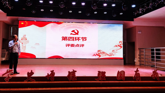 随着最后一组选手的展示完毕,由李云书记对本次活动进行点评。他高度评价了本次活动,对同学们的精彩表演表示肯定。他指出,学习党的历史对于坚定理想信念来说是非常重要的,对于学习党史,他提出了几点建议。首先,在历史全局中把握党的发展方向。尽管党的发展历史不是一帆风顺,但党的初心使命永不变、党的发展总方向是向上的、进步的。其次,通过读原著、学习党章来加深对中国特色社会主义思想的理解。最后,他鼓励青年人勇担时代大任,坚定理想,勇于奉献!