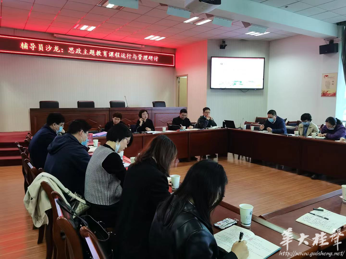 华大桂声讯 4月14日下午2:30,本学期第6期辅导员沙龙在大学生活动中心403举行。本次沙龙内容主要围绕思政主题教育课程运行与管理主题展开研讨。党委学生工作部部长韩君华主持活动并讲话,学生工作部副部长李刁、金新利、吴建成,各学院分党委副书记出席活动。
