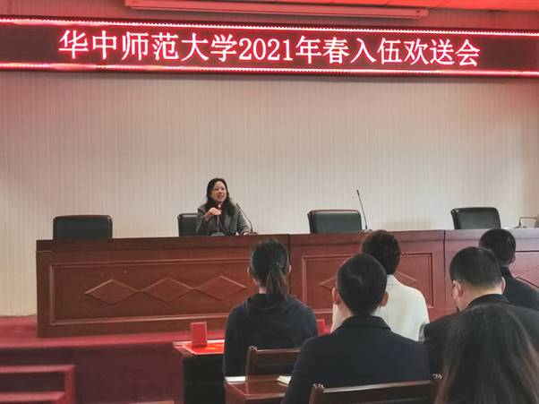 2021年3月12日下午4:00,华中师范大学2021年应征入伍欢送会于大学生活动中心403会议室召开。华中师范大学副校长彭双阶、党委学生工作部(人武部)部长韩君华、党委学生工作部(人武部)副部长李刁、各学院分党委副书记及毕业年级辅导员、五名成功应征入伍的学生参加此次欢送会。会议由学工部部长韩君华主持。