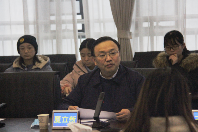 人工智能教育学部讯(记者 刘思源 徐清妍)12月3日中午,人工智能教育学部教育技术学(师范)1901班主题班会在南湖综合楼1182会议室举行。本次班会以以午餐会的形式举行,以“学习贯彻党的十九届五中全会精神 做担当民族复兴大任的时代新人”为主题,邀请了副校长、学部部长夏立新出席,师生共叙全会学习心得,探讨学生发展,共谋学部发展。学部党委书记罗丽华、副书记钟文锐、1901班班主任王忠华、2019级辅导员任梦璐及1901班全体学生参加活动。活动由王忠华副教授主持。