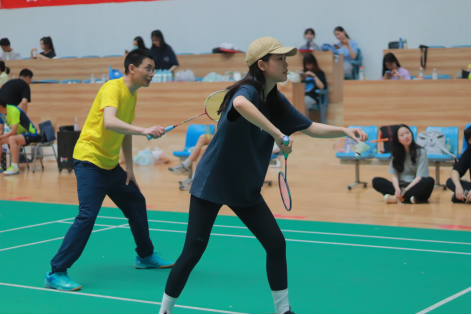 比赛开始后,每组的对战双方都全力以赴,大家斗志昂扬,奋尽全力,随着羽毛球时而轻盈地飞舞、时而迅疾地扣杀,选手们活力四射。一旁的观战人员们不禁拍手叫好,为他们呐喊助威。