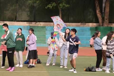 风筝展示过后,各组成员正式进入最激动人心的环节,“逐风放筝——飞的最高”比拼。尽管其中许多同学并未有放风筝的经历和经验,但在积极探索中大家都很快掌握了让风筝飞得更高的方法。操场上的大家,纷纷张开双臂,找寻风的方向,并追随那股风使劲奔跑,慢慢地放线、放线,直到风筝可以乘着风肆意在高空中飘扬。2021级罗玉铉同学表示,“我更加清楚了快乐其实很简单,与三五好友共迎春光,迎着春风放飞心情,都是我们触手可及的快乐。我们都想拥有一个值得回忆的青春,那么我想这一次次简单而弥足珍贵的快乐无疑会使记忆更加明快鲜活!”