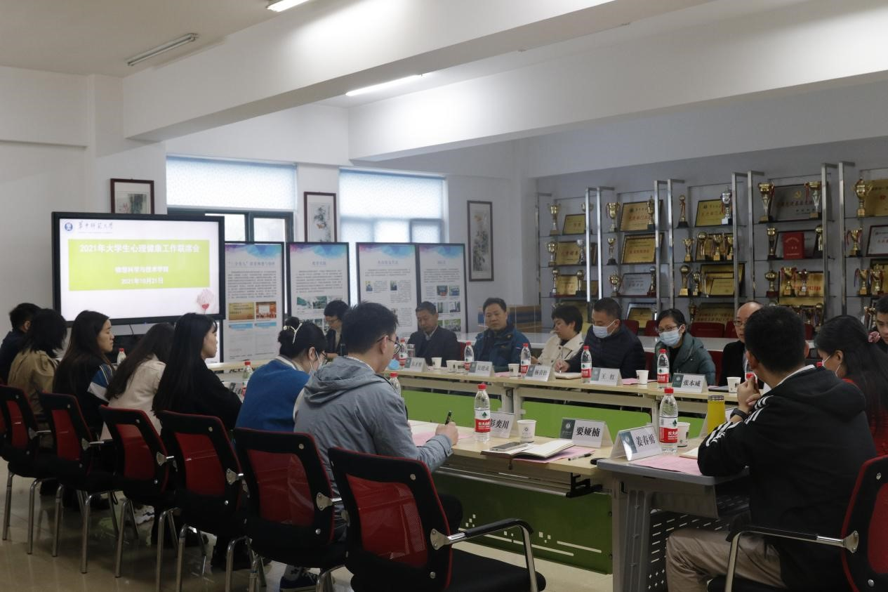 10月21日上午,物理科学与技术学院2021年大学生心理健康工作联席会于九号楼9551会议室召开。学工部副部长、大学生心理健康中心主任吴建成,研究生院副院长杨青松,校医院副院长王红,心理健康中心副主任吴才智到会指导交流。我院党委书记张明生、院长张本威、党委副书记曹阳、党委副书记马英、全体本科生、研究生专兼职辅导员以及班主任代表参加会议。会议由马英主持。