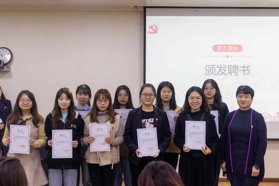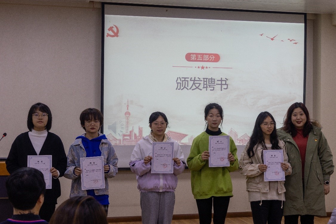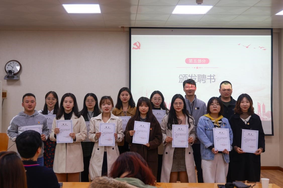 最后,与会领导和老师为党建中心成员以及党支部书记代表颁发聘书。