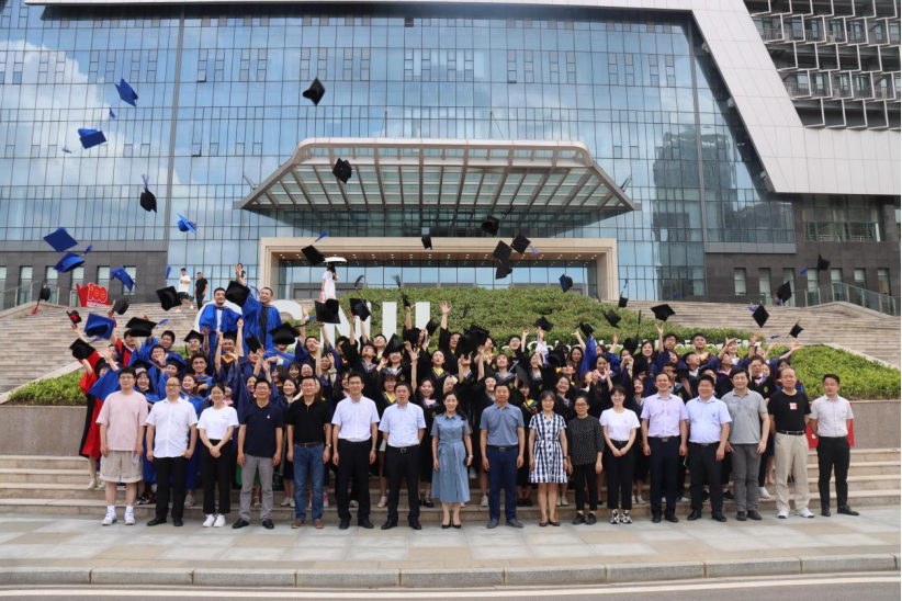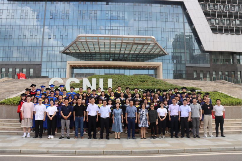 最后,返校毕业生们换上学士服,与参会的教职工一起来到综合楼前合影留念,用相机记录下这一温情时刻。