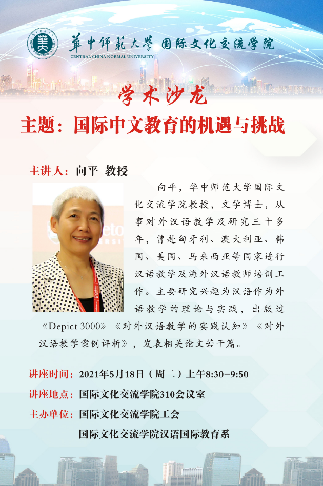 2021年5月18日上午,国际文化交流学院在310会议室开展学术沙龙活动。本次活动由国际文化交流学院汉语国际教育系和学院工会共同举办。学院党总支书记王琍出席活动,活动由副院长左双菊教授主持。