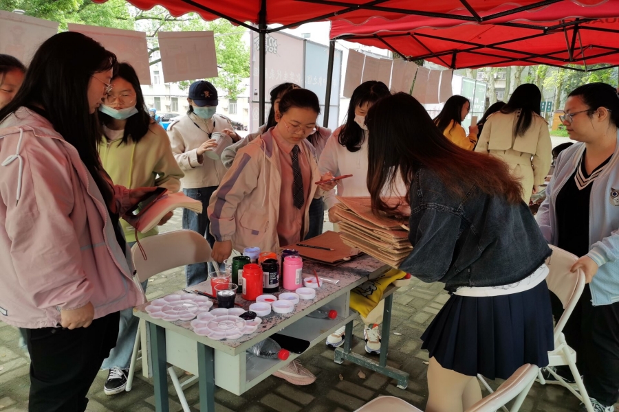 本次活动还设置了许多丰厚的奖品,如绿植、新型种子书签、垃圾分类主题挂件、坐垫等,其中最受欢迎的是一等奖DIY自制亚麻包。游客们抽到一等奖后,在“布足为奇DIY手工制作铺”挑选自己喜欢的颜料和画笔进行绘画,制作画有自己喜欢图案的亚麻包,志愿者则在旁侧帮助清洗画笔画盘、抠取环保颜料。