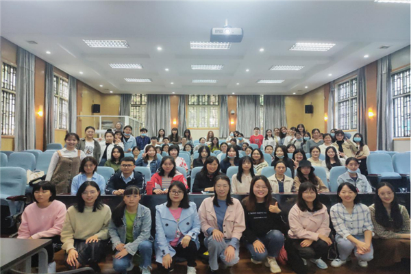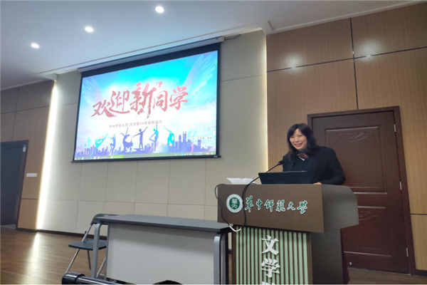 接着郝琴老师发表讲话,她向同学们表达了美好的期许和真挚的祝福。首先,在学习和科研方面,郝老师希望同学们对自己要有严要求、高标准,提醒大家要尽快转换角色,适应研究生生活。郝老师以往年的毕业生论文写作为例,告诉新生们平时要多思考,尝试着手准备毕业论文。同时她指出要积极与导师联系,与老师保持良好的沟通,做好学业规划和职业规划;要利用好身边的学习资源,创造和谐的学习环境,她希望同学们之间团结互助,一起学习,共同进步。其次,在生活方面,郝老师强调强健的身体才是完成学业的最好动力,她建议新生要养成良好的作息习惯,多运动,多锻炼;还要保持良好的心理,提高心理承受能力、抗压能力。再次,在综合能力的培养方面,郝老师鼓励大家不影响学习的情况下做兼职,提高自己的就业竞争力,以便更快地适应社会。她希望同学们无论是不是干部,都要学会主动服务他人和集体,从而提高自我能力,以实现自我管理,自我服务,自我提升。最后,郝老师希望大家严格遵守校纪校规,提醒大家离校要填写请假条。她指出疫情防控是常态的,提醒大家天气转凉要记得加衣,有出现发热等不适情况时要及时上报。针对最近学校出现的学生被骗事件,郝老师号召大家注意财产安全,谨防诈骗。其次也要注意宿舍安全问题,要注意防火,出门记得拔电源。最后郝老师再次对大家的到来表示欢迎,也祝同学们学业有成,生活愉快。