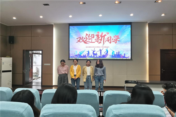 活动伊始,主持人罗兴对新生的到来表示了祝贺和欢迎,接着她向同学们介绍了本次见面会的活动主题,其目的是让同学们通过这次活动增进了解,拉近距离,从而更好地融入到专硕这个温暖的大家庭。随后学科教学(语文)和汉语国际教育方向的专业负责人和党支部书记、支委集体亮相,分别做了自我介绍并介绍了各自负责的工作内容。
