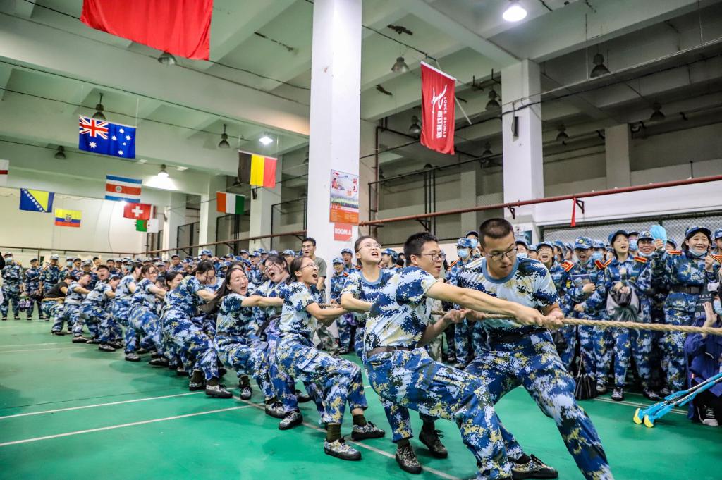 9月17日,数学与统计学学院(以下简称数院)2020级学生在军训拔河比赛中,以3:0的成绩战胜新闻传播学院(以下简称新传),摘得桂冠。