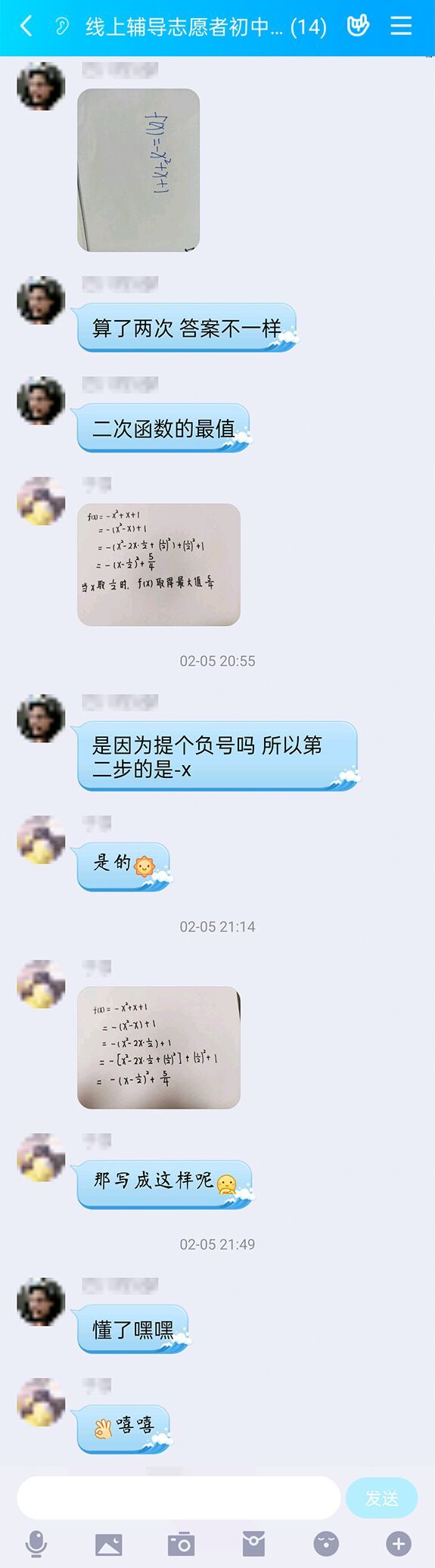 此次活动主要分为初三、高三和抗疫情一线人员子女一对一辅导三部分进行。其中,为帮助即将参加中考的初三学生,为他们进行数学科目的查漏补缺、答疑解惑,数统学院挑选出20名数统学院学子组成线上辅导志愿者初中组。志愿者们根据初三学子们的所在地区进行有针对性的分组,以便提供更加优质的教学辅导。在志愿者们的引导之下,同学们积极提出了自己在学习上的困惑,志愿者们也耐心地指导着同学们,并且与同学们分享学习数学的相关经验。