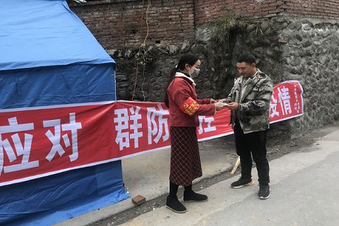 “我是共青团员,我不退缩。”话语朴实无华,却掷地有声。2018级英语系学生伍思洁将这句话作为激励自己的能量,自1月28日起至今,她在四川省绵阳市平武县木座藏族乡民族村中拉开防疫志愿工作的大旗。伍思洁“请缨”加入到由本村村委会的志愿队伍中,每日奔走于村内各处,宣传新型冠状病毒相关防控知识、定时走访村民家中记录体温、分发医用口罩及消毒液等物品……伍思洁以自己的实际行动,与社区干部和居民共同构筑牢不可摧的坚实防线,用青春和热血守护着美丽的家园。
