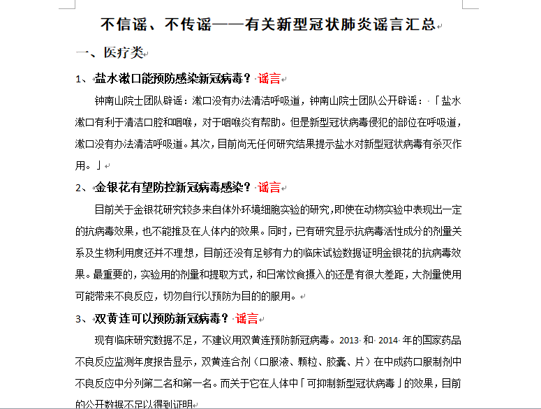 主题二:不信谣,不传谣——有关新型冠状肺炎谣言汇总