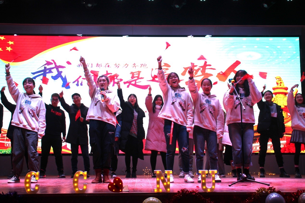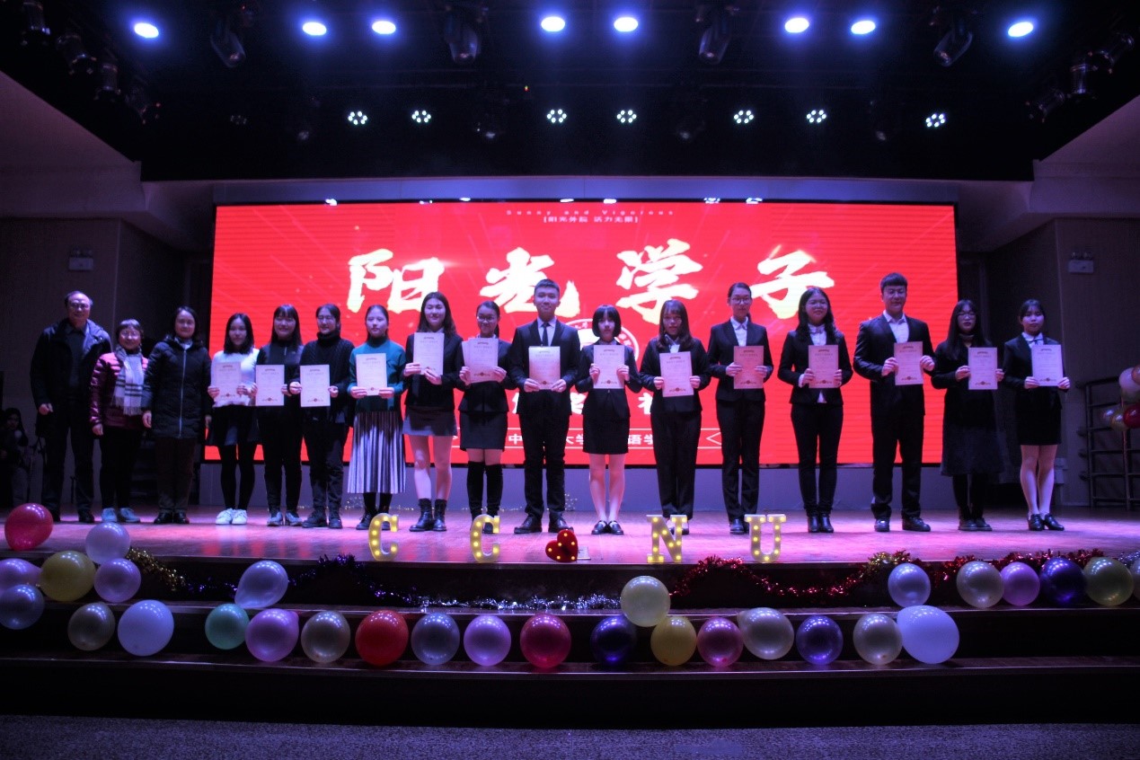 西语系鲁智琛等人表演的舞蹈《bad guys》风格变换自如,舞姿飒爽。而俄语系的节目《龙与天鹅》则以音乐剧的形式讲述了龙和天鹅的故事。在欢乐的气氛中迎来第二个颁奖环节,由领导老师为获得2019年度“阳光学子”、“阳光学子提名奖”、“八六励志奖学金”的优秀学生进行颁奖。其中西四201宿舍、晨光服务队、杨弘毅等人获得“阳光学子”称号,陈姝妤、刘博通等人获得“阳光学子提名奖”,陈佳欢、张钱等人获得“八六励志奖学金”。颁奖过后,西语系祝心晴、周胜彬、胡璇带来歌舞《Matame》用曼妙的舞姿诉说着爱情的魅力,而法语班合唱《夜空中最亮的星》则用温柔的歌声展现法语的动人温情。最后,一首《我们都是追梦人》诉说着对新的一年的期望,随着歌声渐停,本次新年晚会至此落下帷幕。