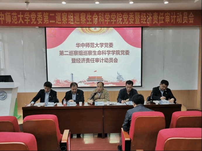 根据学校党委的统一部署,2019年11月6日下午,华中师范大学党委第二巡察组巡察生命科学学院党委暨经济责任审计工作动员会召开。校党委第二巡察组副组长周政华作巡察工作动员讲话,巡察办主任王旺胜就即将开展的巡察工作提要求,审计处副处长王军作经济责任审计工作动员讲话,生命科学学院党委书记邱玉华作表态发言,会议由生命科学学院院长邱保胜主持。巡察组、审计组全体工作人员和被巡察单位党政领导班子成员、党委委员、纪检委员、党支部书记,部分教师和学生代表参加会议。