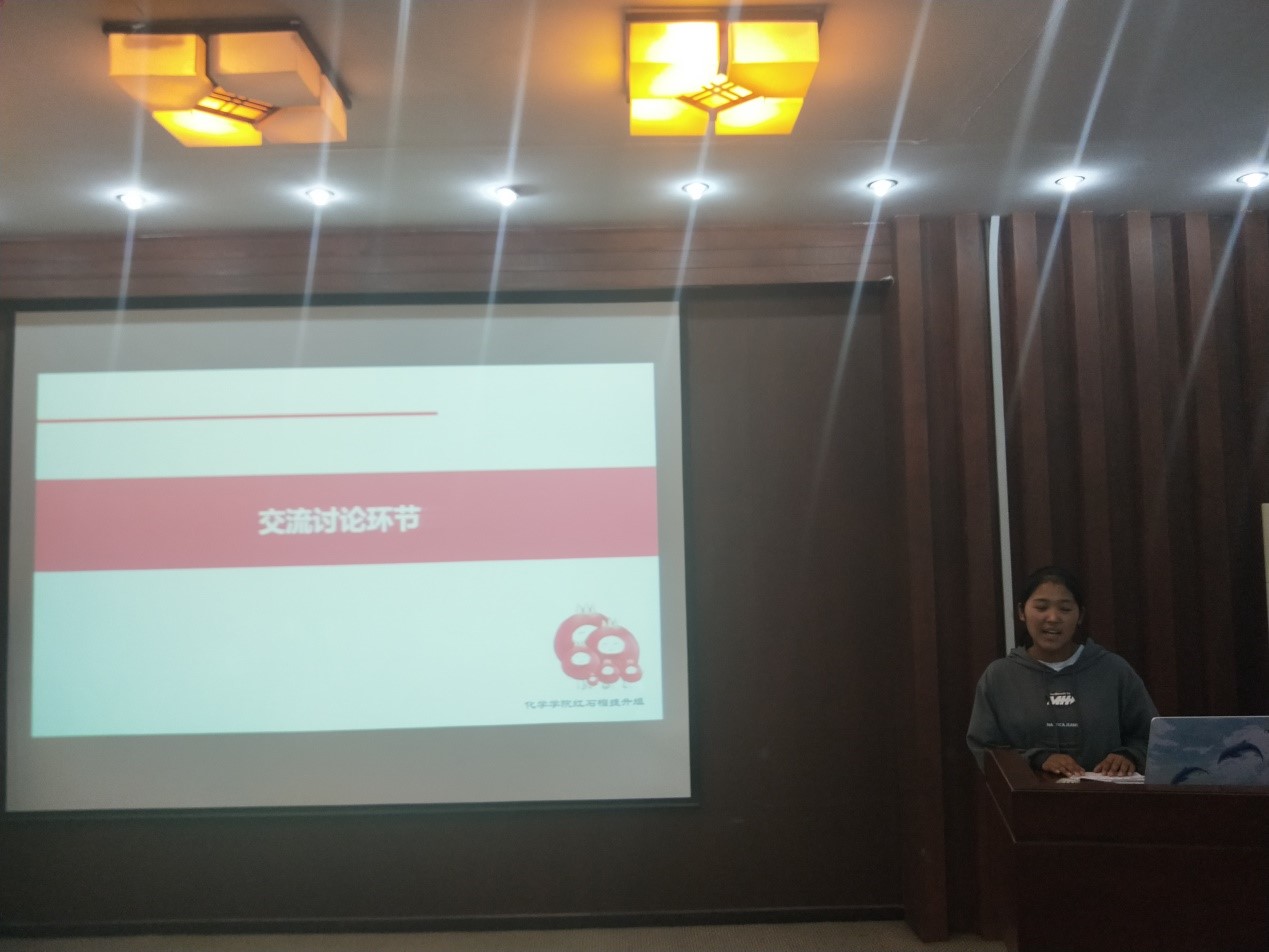 最后聂敏预告了红石榴的相关活动;罗雅怡介绍了化学学院学业辅导工作,并鼓励同学们积极参与;武双欣对2019级新生们的分享做出总结,同时表示各民族学生遇到任何问题,学院辅导员和学生干部都会提供帮助。