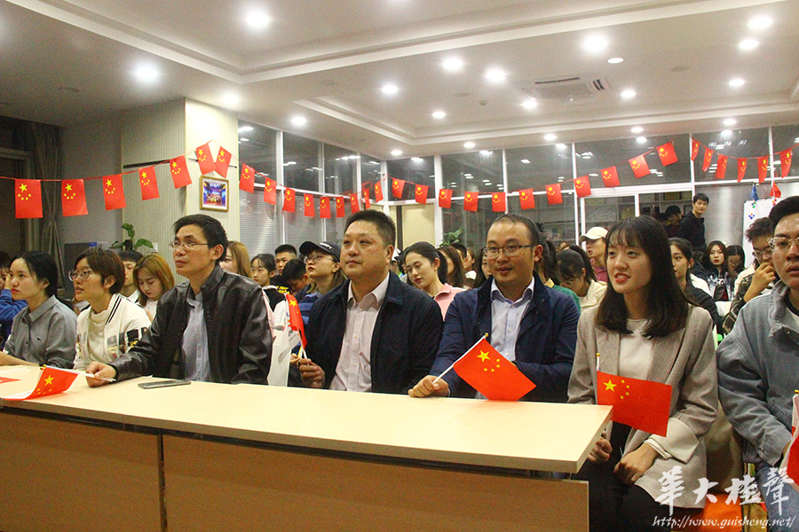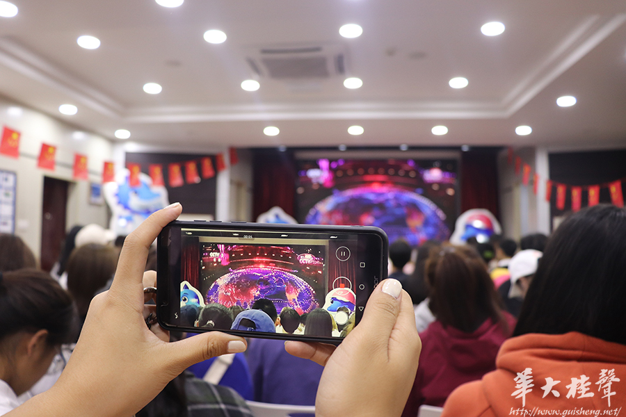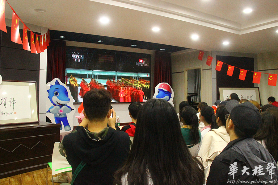 华大桂声讯10月18日晚8时,红旗招展,气势磅礴,第七届世界军人运动会在江城武汉开幕。令人激动的是,我校音乐学院60名学生参加了本次开幕式第七篇章的演出。为了让音乐学院师生更近距离的看到参演的同学,并感受祖国70年来的飞速发展。音乐学院组织师生在田家炳楼八楼新媒体中心集中观看军运会开幕式直播。
