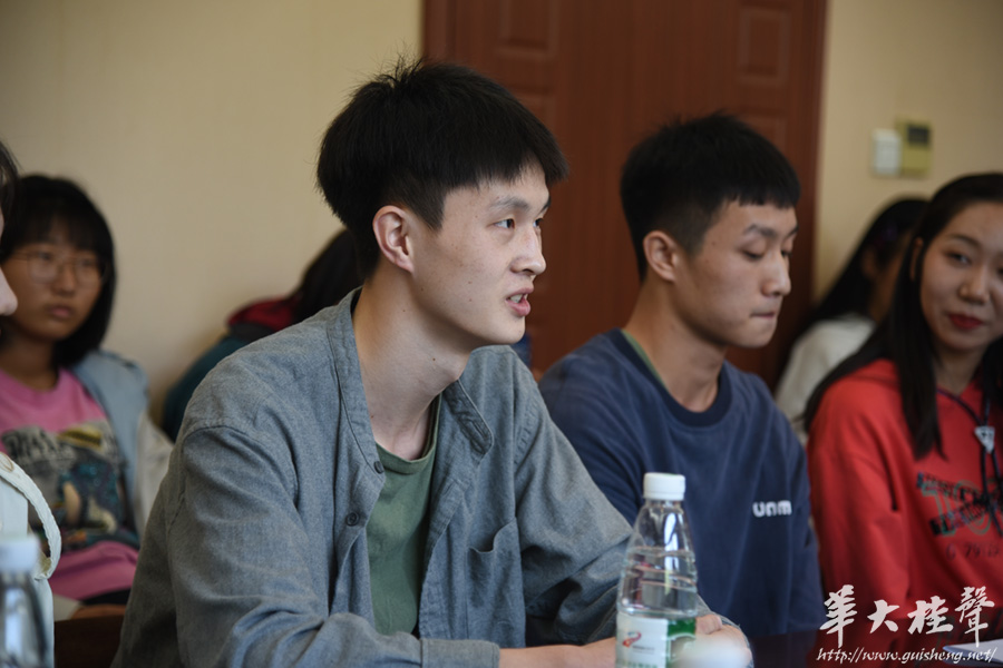 最先发言的是音乐学院本科生17级舞蹈系的张蓝心。 “正式演出之前的激动是因为能够见到成龙等前来表演的明星,但是当真正站上开幕式表演舞台上,是为世界军人运动会在中国武汉召开,是为不抛弃不放弃坚持到最后的自己而激动。”在整整一百天的排练过程中,即便是从早上七点忙碌到凌晨二三点,即便是几乎20个小时的失联状态,即便经历了比其他篇章更复杂更辛苦的排练、整段动作改了四个版本,有60位兄弟姐妹互帮互助、团结一心的鼓励;有来得最早,走的最晚的带队老师像照顾自己家孩子一样的关心和陪伴,有学校给的这份宝贵的机会,队伍里的每个人都坚持了下来。张蓝心觉得这次经历比错过的其他事情更加宝贵。当负责军运会表演的副导演问她是哪个学校的学生,她很自豪的说:“我是华师人!”这位副导演在排练过程中多次表扬:“华师的学生真的很棒!”