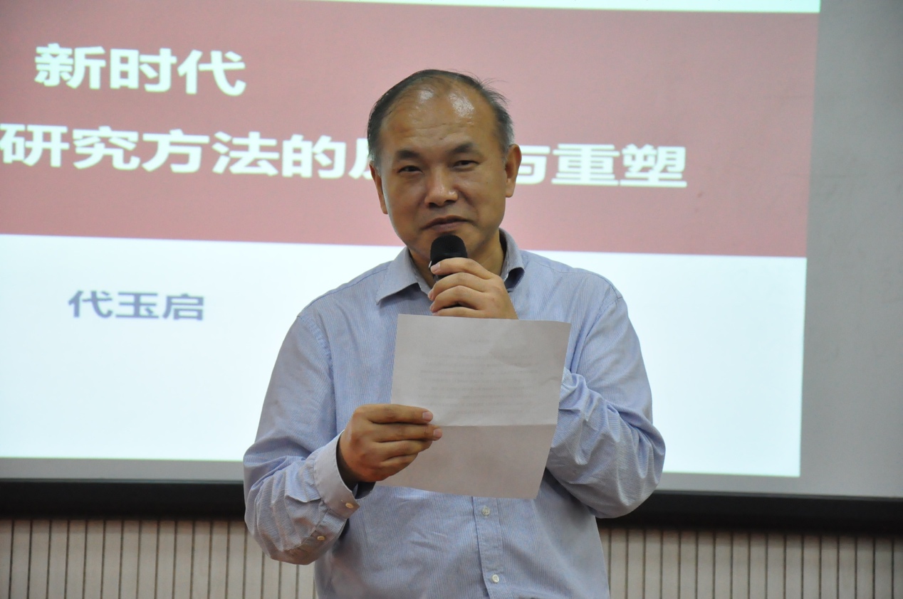 马克思主义学院讯10月12日下午2点,浙江大学马克思主义学院代玉启副教授做客由马克思主义学院举办的思政名家讲坛第十三期,在马克思主义学院三楼报告厅为我院师生带来了一场题为《新时代思想政治教育研究方法的反思与重塑》的专题讲座,本次讲座由马克思主义学院院长万美容教授主持,我院百余名本硕博同学积极参加此次讲座。