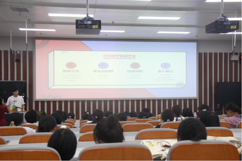 首先,经管学院第三十八届学生会执行主席许光耀对学生会进行系统性的介绍,用精彩的视频向同学们展示学生会不仅仅是为同学们服务的一个组织,更是提升能力、收获友谊的平台。学生会的五个部门依次进行招新宣讲,办公室用一个快闪动画向同学们展示部门负责的工作、部门的重要性以及快乐的日常,瞬间抓住了22级经管学子的眼球,引起同学们浓厚的兴趣。学术与创新中心从得天独厚的学术、科研、创业的优势资源出发,向同学们展示学生创新中心负责的各项活动,以及在这里可以提升各种能力和拥有丰富的资源。文体中心从部门简介、部门工作、部门团建、部门展望四个方面,向同学们介绍了文体中心负责承办的各项活动,用诙谐幽默的语言展示部门的风采。交流与实践中心用暑期实践精彩的视频向同学们展示其负责承办实践活动,一句“文能写报告,武能做调研”激起同学们浓厚的兴趣。维权与服务中心以连续两个学期获得优秀权益服务部的独特优势,从部门简介、相关工作以及收获三个方面向同学们详细介绍其负责开展的工作。