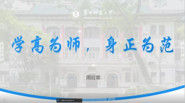 主讲人周旺章着眼于师范生技能、科研与支教两个方面,为大家分享经验。他指出,同学们在当前阶段最重要的步骤是打好专业知识基础,同时利用好教学研究资源。他就创新创业比赛进行了相关说明,分享自己参加比赛的心得体会。最后,他鼓励同学们珍惜在卓越班的时光,好好打磨自我。