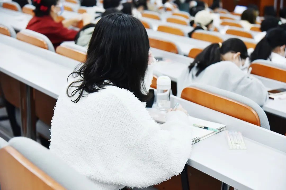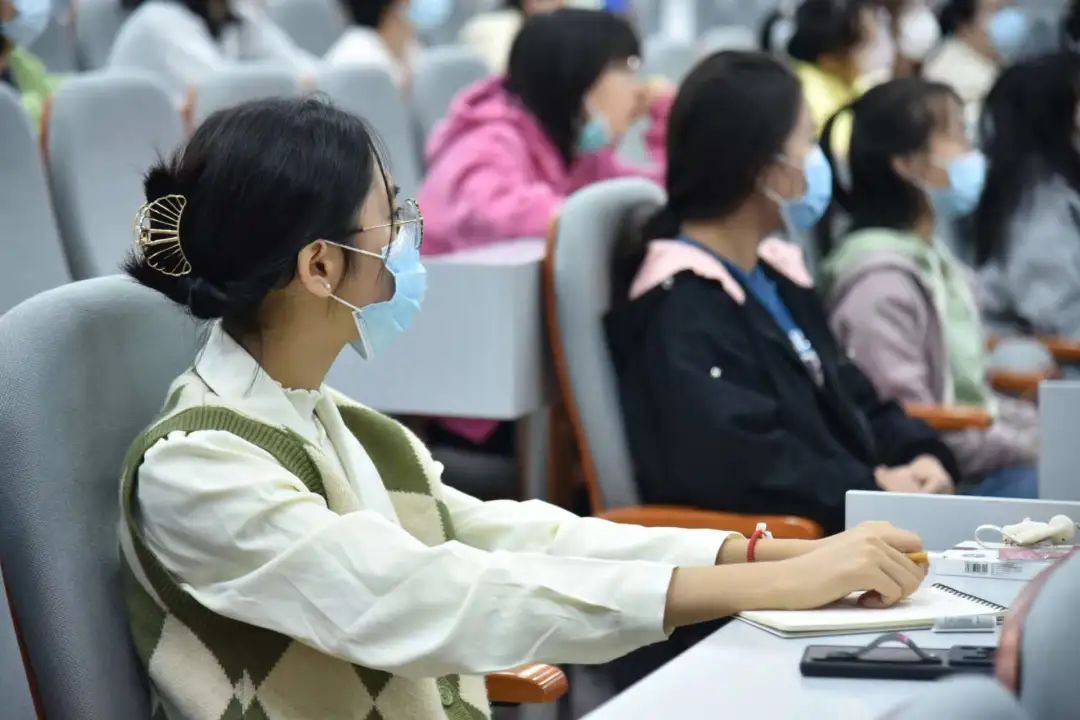 在座的同学认真听、细心记,紧紧跟随主讲教师的步伐,还将讲座中提到的重要知识转换成笔记来加强记忆。