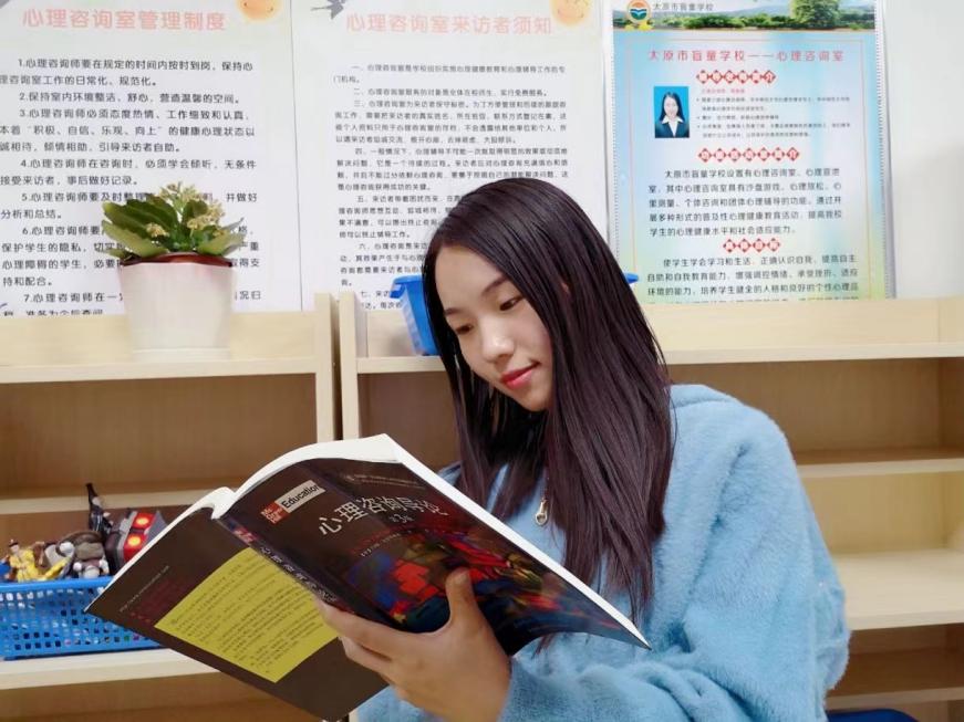 在韩雨涵入职之前,太原市盲童学校没有心理教师,学校的心理工作如同一张白纸,需要从无到有,一点点开始和完善。而且,盲校的心理工作又与普通学校不同,特殊教育心理学属于特殊教育和心理学相结合的边缘学科,既没有前人现成的经验可循,又没有独立的学科知识可依,只能通过自己摸爬滚打,在实践中探索。当提高工作效率已经不能满足工作的需求,开发适合盲生的心理健康教育课教案等细致而具体的工作,只能通过时间,慢慢地打磨。从入职到现在,她每天早上七点二十到校,晚上七点半甚至八点才离校,风雨无阻,寒暑交替,始终如一。